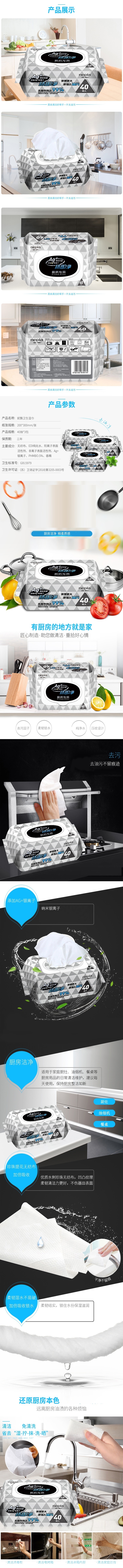 首页 所有商品 厨房用纸 妮飘 厨房去油污湿巾纸40抽*3包